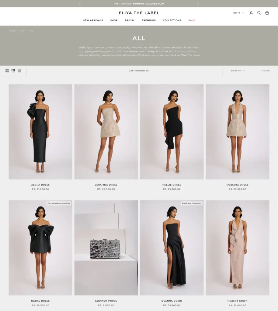 Crafted a clean, responsive layout showcasing signature dresses and occasionwear with high-impact imagery and intuitive navigation.